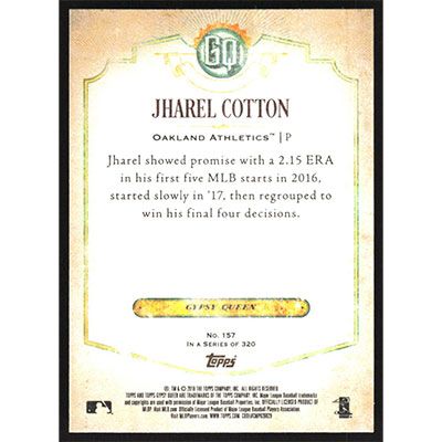 This is a 2018 Topps Gypsy Queen Jharel Cotton baseball card. The card is #157 and pictures show condition.