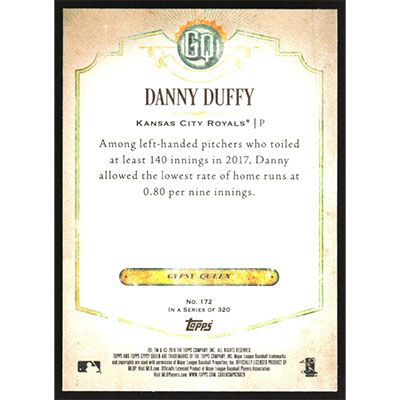 This is a 2018 Topps Gypsy Queen Danny Duffy baseball card. The card is #172 and pictures show condition.