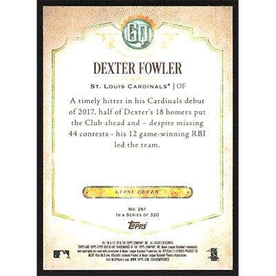 This is a 2018 Topps Gypsy Queen Dexter Fowler baseball card. The card is #261 and pictures show condition.