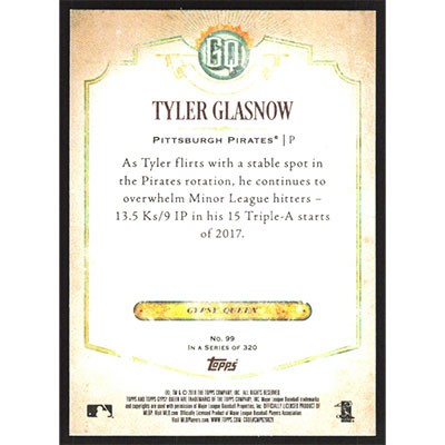 This is a 2018 Topps Gypsy Queen Tyler Glasnow baseball card. The card is #99 and pictures show condition.