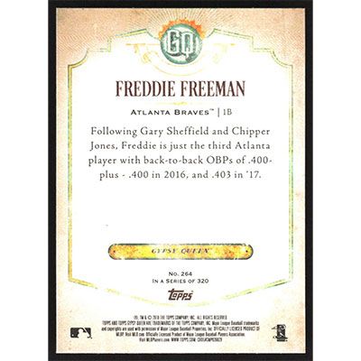 This is a 2018 Topps Gypsy Queen Missing Team Nameplate Freddie Freeman baseball card. The card is #264 and pictures show condition. Team(s): Atlanta Braves