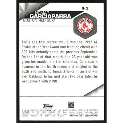 This is a 2018 Topps Instant Impact Nomar Garciaparra baseball card. The card is #II-3 and pictures show condition.
