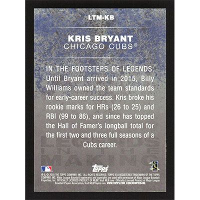This is a 2018 Topps Legends in the Making Kris Bryant baseball card. The card is #LTM-KB and pictures show condition.