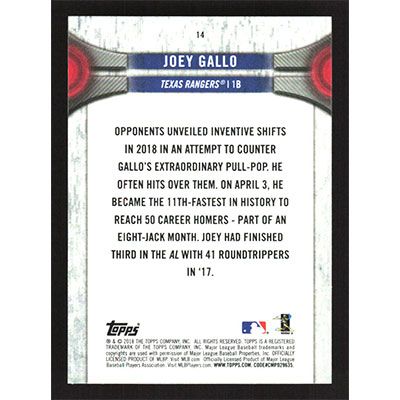 This is a 2018 Topps National Baseball Card Day Joey Gallo baseball card. The card is #14 and pictures show condition.
