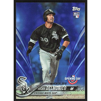 This is a 2018 Topps Opening Day Blue Foil Nicky Delmonico baseball card. The card is #124 and pictures show condition. Team(s): Chicago White Sox Rookie Card (RC)