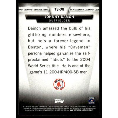 This is a 2018 Topps Salute Johnny Damon baseball card. The card is #TS-38 and pictures show condition.
