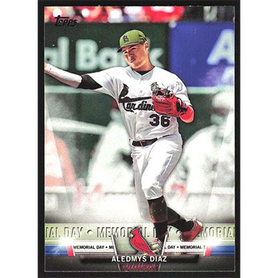 This is a 2018 Topps Salute Aledmys Diaz baseball card. The card is #TS-54 and pictures show condition.