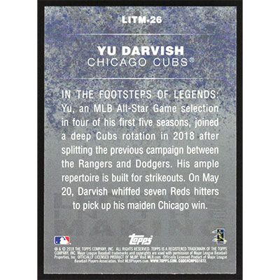 This is a 2018 Topps Update Legends in the Making Yu Darvish baseball card. The card is #LITM-26 and pictures show condition.