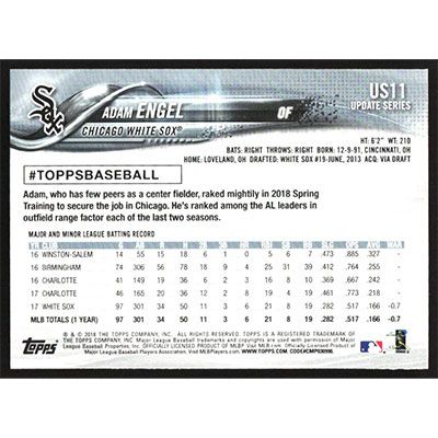 This is a 2018 Topps Update Adam Engel baseball card. The card is #US11 and pictures show condition.
