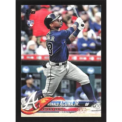 This is a 2018 Topps Update Ronald Acuña Jr. baseball card. The card is #US250 and pictures show condition.