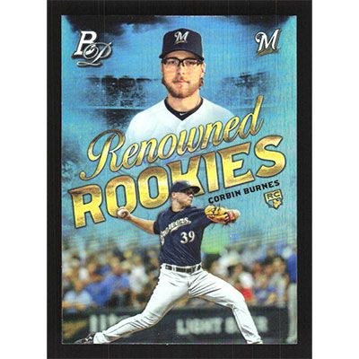 This is a 2019 Bowman Platinum Renowned Rookies Corbin Burnes baseball card. The card is #RR-14 and pictures show condition. Team(s): Milwaukee Brewers Rookie Card (RC)