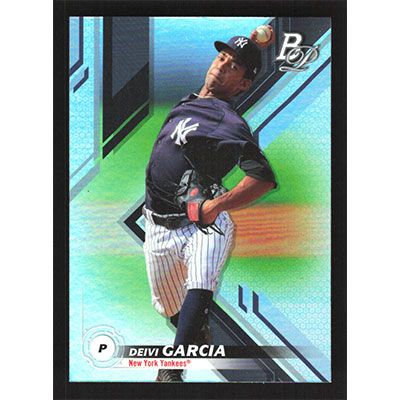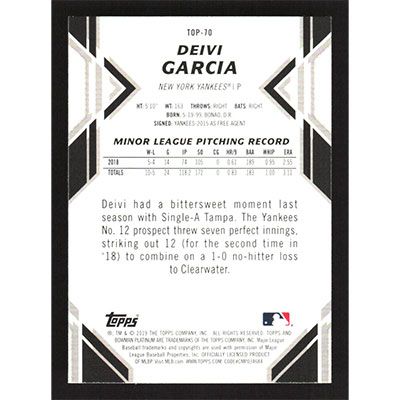 This is a 2019 Bowman Platinum Top Prospects Deivi Garcia baseball card. The card is #TOP-70 and pictures show condition.