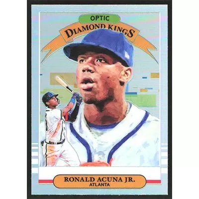 This is a 2019 Donruss Optic Holo Ronald Acuña Jr. Diamond Kings baseball card. The card is #16 and pictures show condition.
