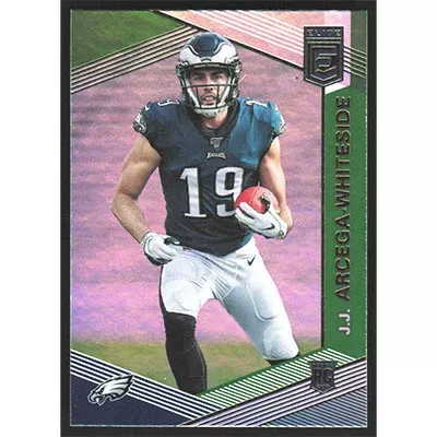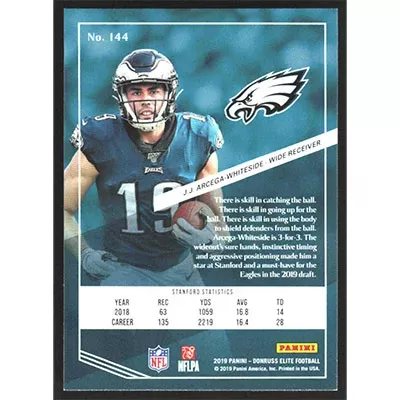 This is a 2019 Elite Green J.J. Arcega-Whiteside football card. The card is #144 and pictures show condition.