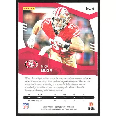 This is a 2019 Elite Pink Nick Bosa football card. The card is #6 and pictures show condition.