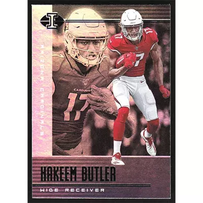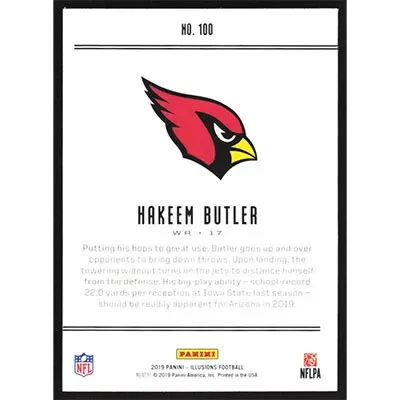This is a 2019 Panini Illusions Hakeem Butler football card. The card is #100 and pictures show condition.