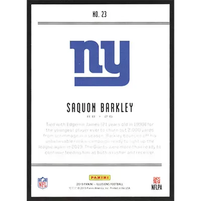 This is a 2019 Panini Illusions Saquon Barkley football card. The card is #23 and pictures show condition.