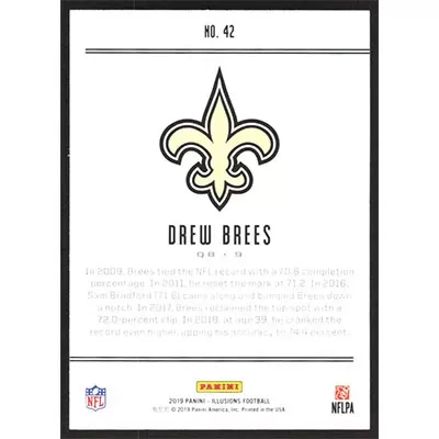 This is a 2019 Panini Illusions Drew Brees football card. The card is #42 and pictures show condition.