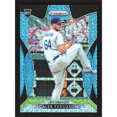 This is a 2019 Panini Prizm Blue Mojo Caleb Ferguson baseball card. The card is #128 and pictures show condition. This card is limited; #'d 019/399. Team(s): Los Angeles Dodgers Rookie Card (RC)