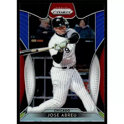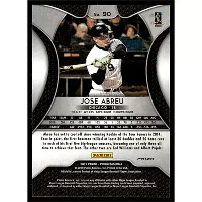 This is a 2019 Panini Prizm Red White and Blue Jose Abreu baseball card. The card is #90 and pictures show condition.