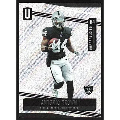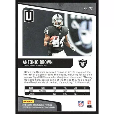 This is a 2019 Panini Unparalleled Antonio Brown football card. The card is #77 and pictures show condition.