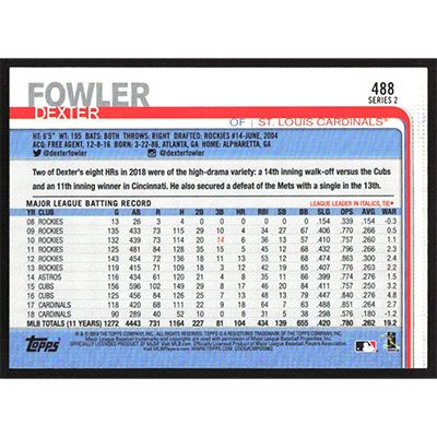 This is a 2019 Topps Dexter Fowler baseball card. The card is #488 and pictures show condition.