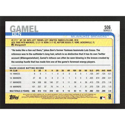 This is a 2019 Topps Ben Gamel baseball card. The card is #506 and pictures show condition.