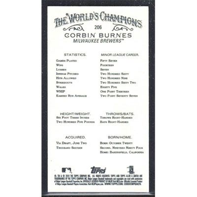 This is a 2019 Topps Allen & Ginter Mini Corbin Burnes baseball card. The card is #206 and pictures show condition. Team(s): Milwaukee Brewers Rookie Card (RC)