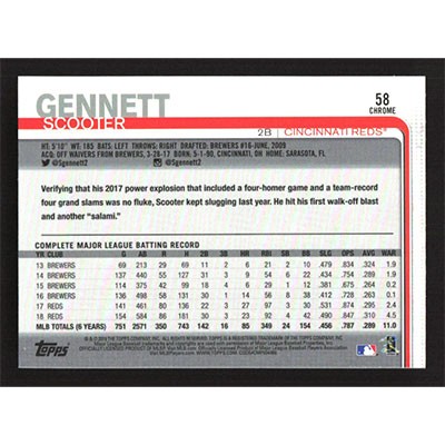 This is a 2019 Topps Chrome Scooter Gennett baseball card. The card is #58 and pictures show condition.