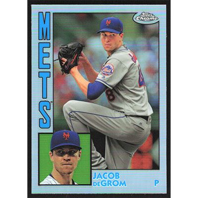 This is a 2019 Topps Chrome '84 Jacob deGrom baseball card. The card is #84TC-6 and pictures show condition.