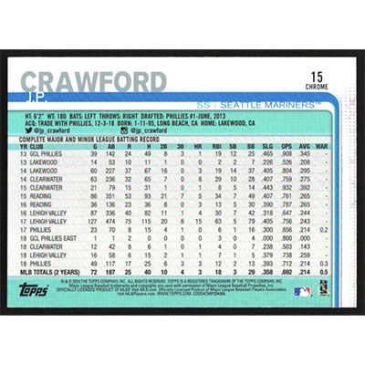This is a 2019 Topps Chrome Prism Refractors J.P. Crawford baseball card. The card is #15 and pictures show condition.