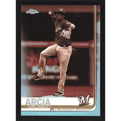 This is a 2019 Topps Chrome Sepia Refractors Orlando Arcia baseball card. The card is #189 and pictures show condition.