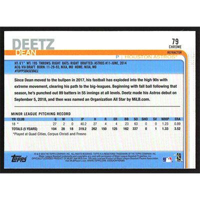 This is a 2019 Topps Chrome Sepia Refractors Dean Deetz baseball card. The card is #79 and pictures show condition. Team(s): Houston Astros Rookie Card (RC)
