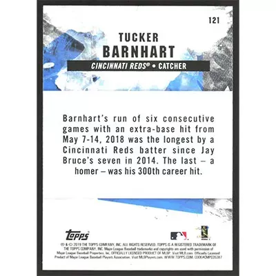 This is a 2019 Topps Fire Tucker Barnhart baseball card. The card is #121 and pictures show condition.
