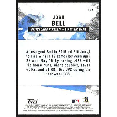 This is a 2019 Topps Fire Josh Bell baseball card. The card is #167 and pictures show condition.