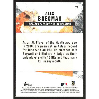 This is a 2019 Topps Fire Alex Bregman baseball card. The card is #72 and pictures show condition.