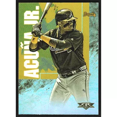 This is a 2019 Topps Fire Gold Mint Ronald Acuña Jr. baseball card. The card is #37 and pictures show condition.
