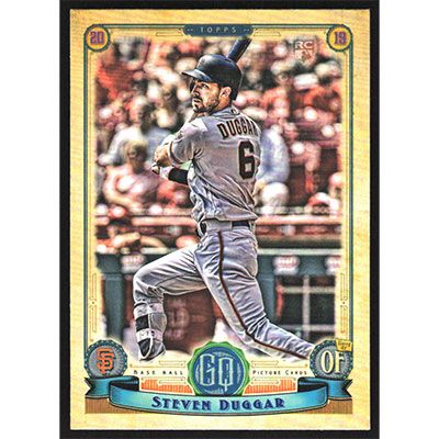 This is a 2019 Topps Gypsy Queen Steven Duggar baseball card. The card is #108 and pictures show condition. Team(s): San Francisco Giants Rookie Card (RC)
