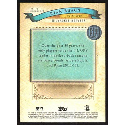 This is a 2019 Topps Gypsy Queen Ryan Braun baseball card. The card is #172 and pictures show condition.
