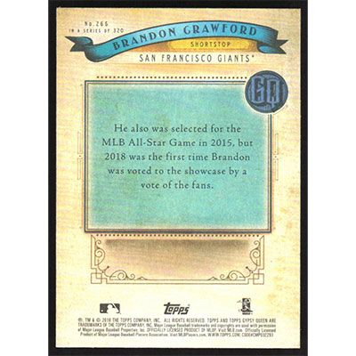 This is a 2019 Topps Gypsy Queen Brandon Crawford baseball card. The card is #265 and pictures show condition.