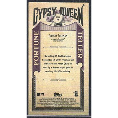 This is a 2019 Topps Gypsy Queen Fortune Teller Mini Freddie Freeman baseball card. The card is #FTM-FF and pictures show condition. Team(s): Atlanta Braves