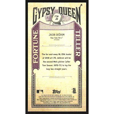 This is a 2019 Topps Gypsy Queen Fortune Teller Mini Jacob deGrom baseball card. The card is #FTM-JD and pictures show condition.
