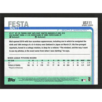 This is a 2019 Topps Update Matt Festa baseball card. The card is #US111 and pictures show condition.