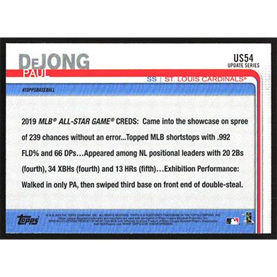 This is a 2019 Topps Update Paul DeJong All-Star baseball card. The card is #US54 and pictures show condition.