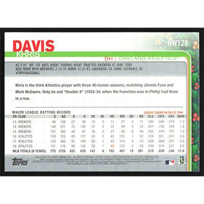 This is a 2019 Topps Wal-Mart Holiday Khris Davis baseball card. The card is #HW128 and pictures show condition.