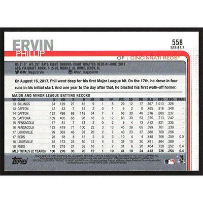This is a 2019 Upper Deck Phillip Ervin baseball card. The card is #558 and pictures show condition.