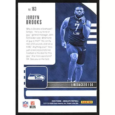 This is a 2020 Absolute Jordyn Brooks football card. The card is #163 and pictures show condition.