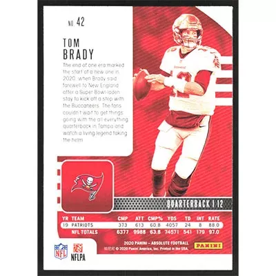 This is a 2020 Absolute Tom Brady football card. The card is #42 and pictures show condition.