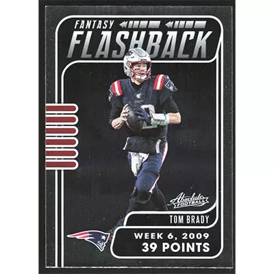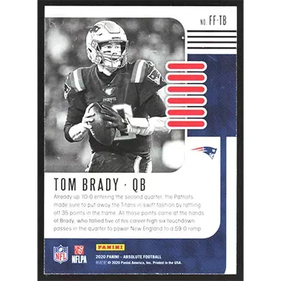 This is a 2020 Absolute Fantasy Flashback Tom Brady football card. The card is #FF-TB and pictures show condition.