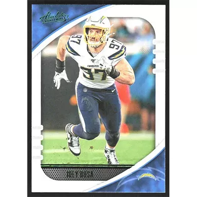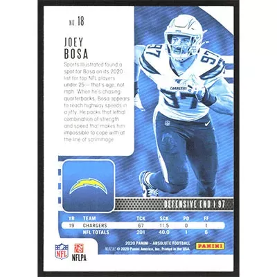 This is a 2020 Absolute Green Joey Bosa football card. The card is #18 and pictures show condition.